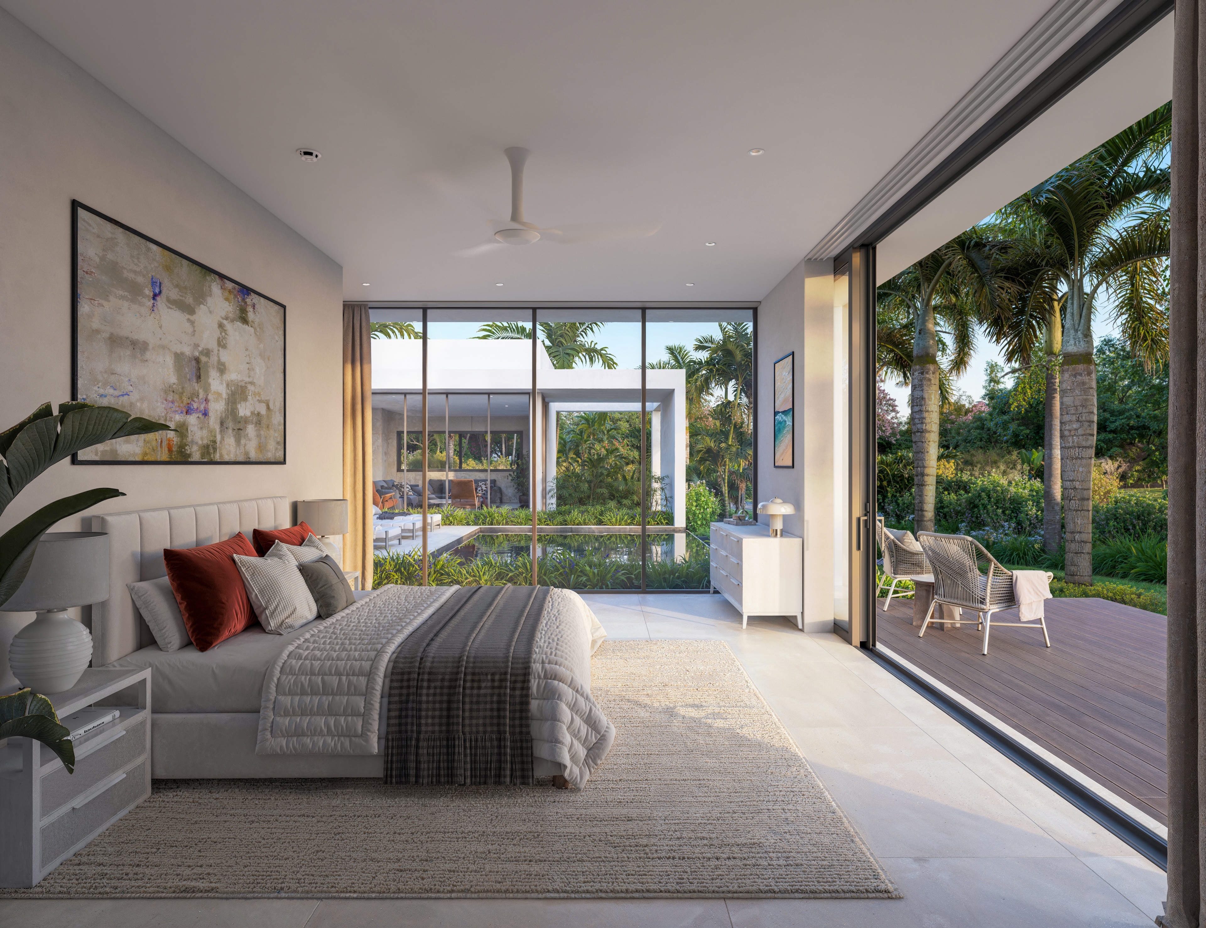 A modern expression of island serenity, Villa Oasis is a 2,976 sq ft eco-conscious retreat that blends refined comfort with the beauty of its natural surroundings. This single-storey, 3-bedroom, 3.5-bathroom residence wraps around a private courtyard and lush gardens, with floor-to-ceiling glass doors that open fully to create a seamless indoor-outdoor experience.
