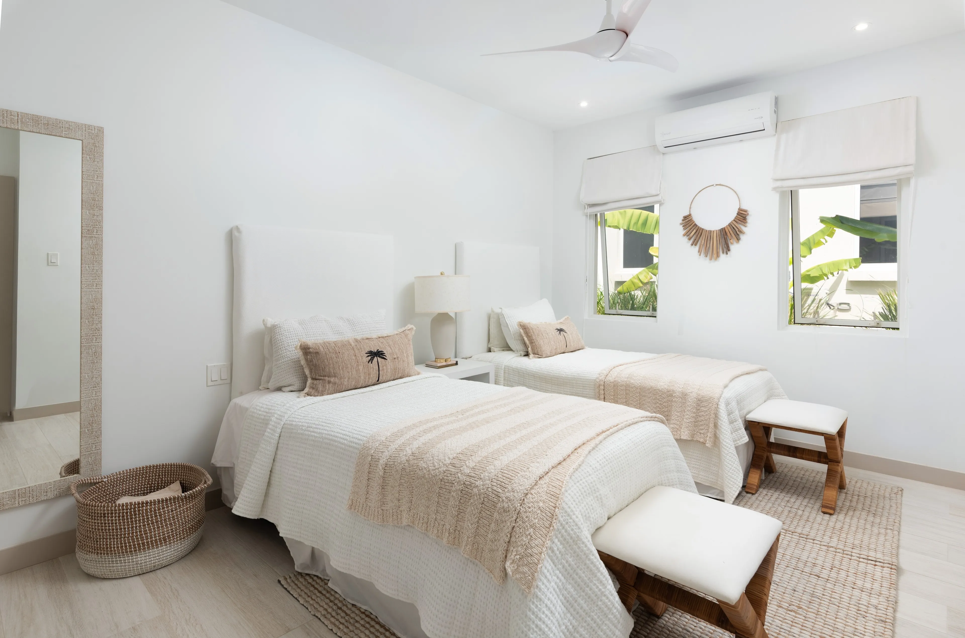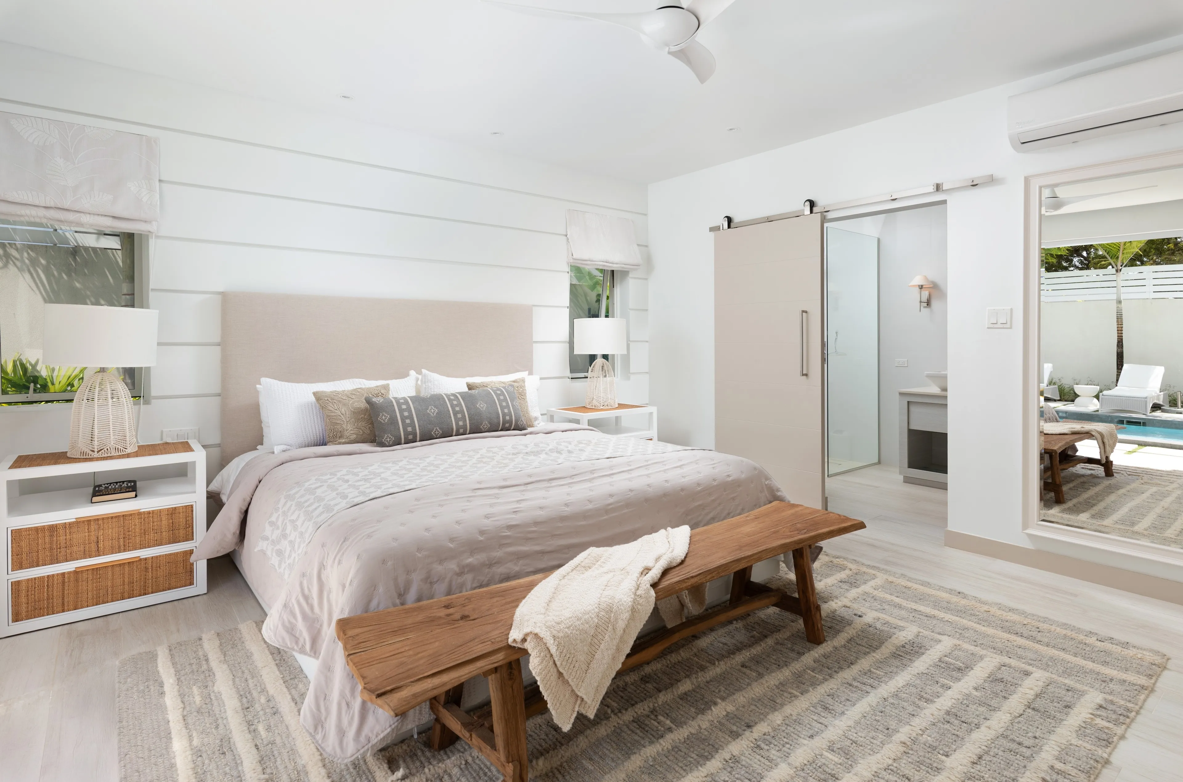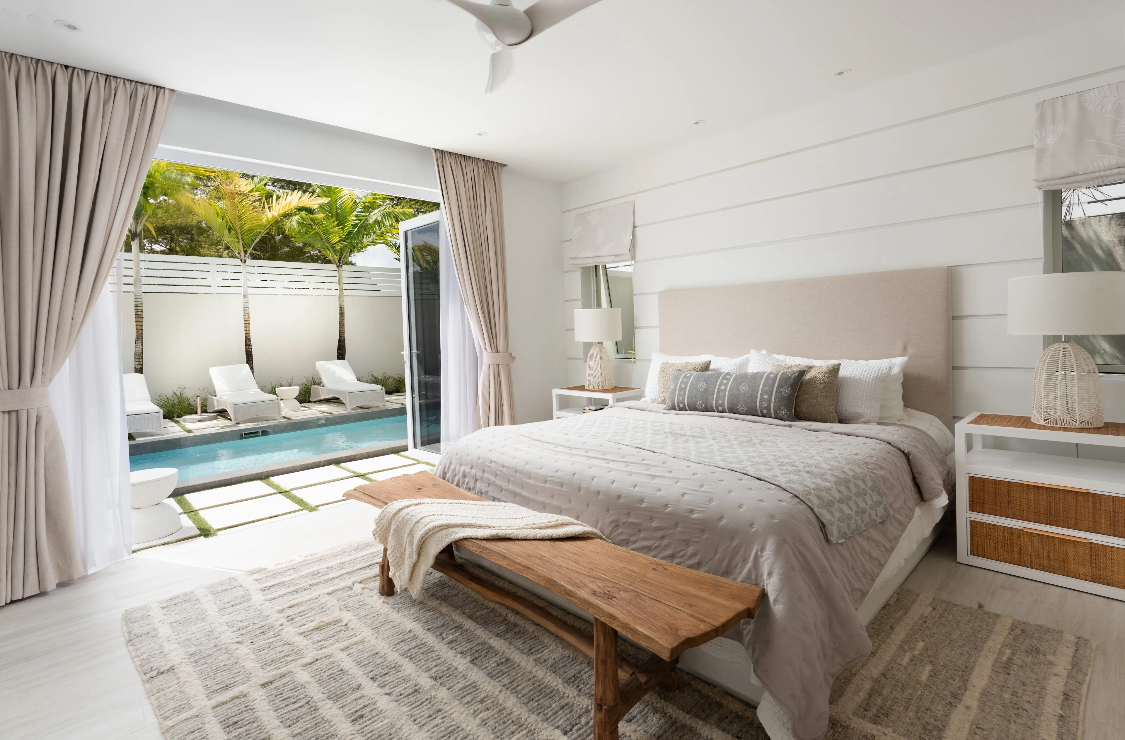 Each of the four bedrooms is well proportioned and designed with privacy in mind. The primary suite is a standout, with a king-size bed, direct poolside access, ample closet space and a beautifully finished ensuite bathroom that feels like a private spa.